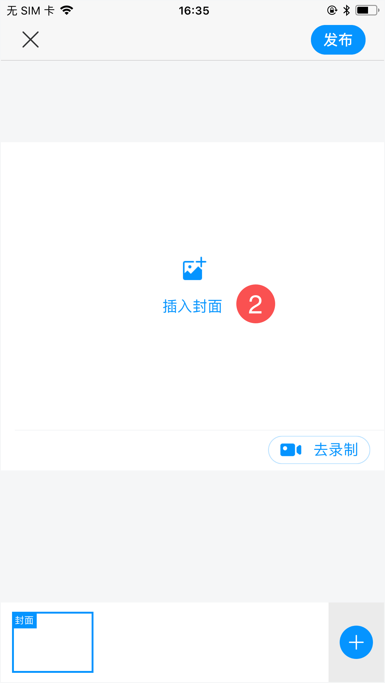 2. 进入创作页面后,点击页面中间的【加号】即可选择手机中的图片作为本视频的封面